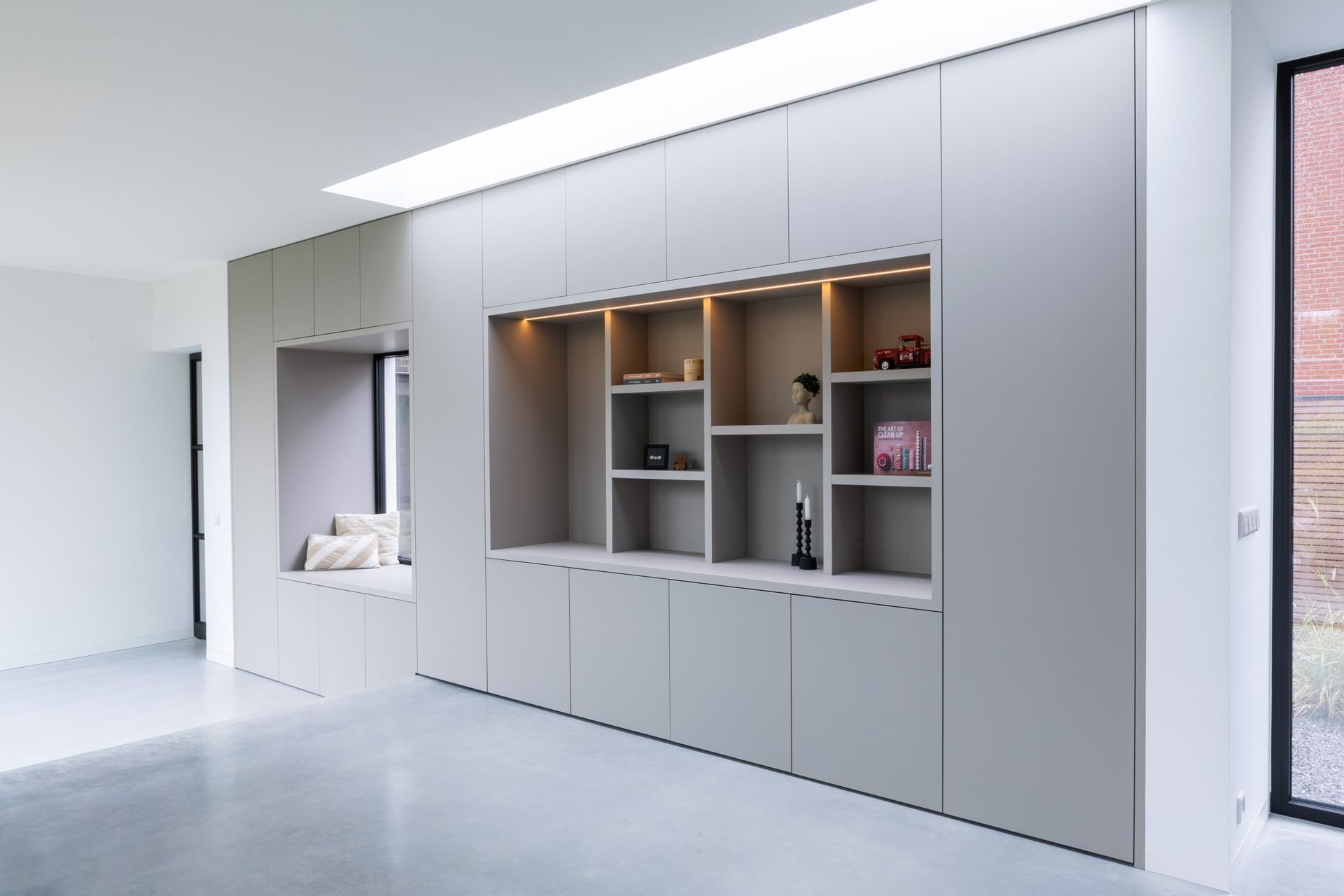 Een kast is niet alleen een handig hulpmiddel om spullen in op te bergen; een kast kan ook het interieur compleet anders maken. Het kan dienen als een ware eyecatcher, sfeervolle opvulling van een ruimte en/of ter maskering van kabels, oneffenheden, gaten en schades. Met onze in-house interieurontwerpstudio en veelzijdige werkplaats zijn we in staat om iedere droomkast om te zetten in werkelijkheid. Hieronder een greep uit de kledingkasten, kabinetkasten, opbergkasten, garagekasten, niskasten, woonkamerkasten, computerkasten, kantoorkasten, bureaukasten, meterkasten en boekenkasten die we voor onze klanten reeds hebben mogen ontwerpen en realiseren.