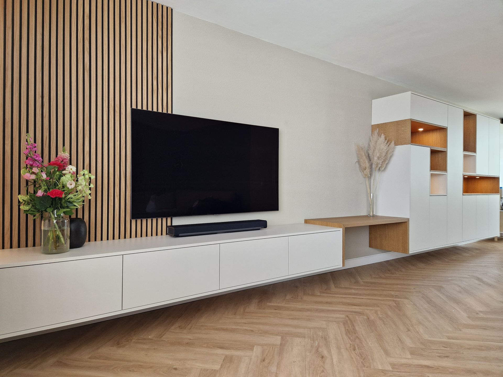 Een TV-meubel is een ideaal meubelstuk om een televisie een mooie plek te geven in het interieur en voor het opslaan van gebruiksvoorwerpen. Dankzij de oneindige mogelijkheden van maatwerk is een TV-meubel ook uiterst geschikt om aanvullende items als een mediabox, geluidsinstallatie, (elektronische) open haard en/of interieuraccessoires een passende plaats te geven.