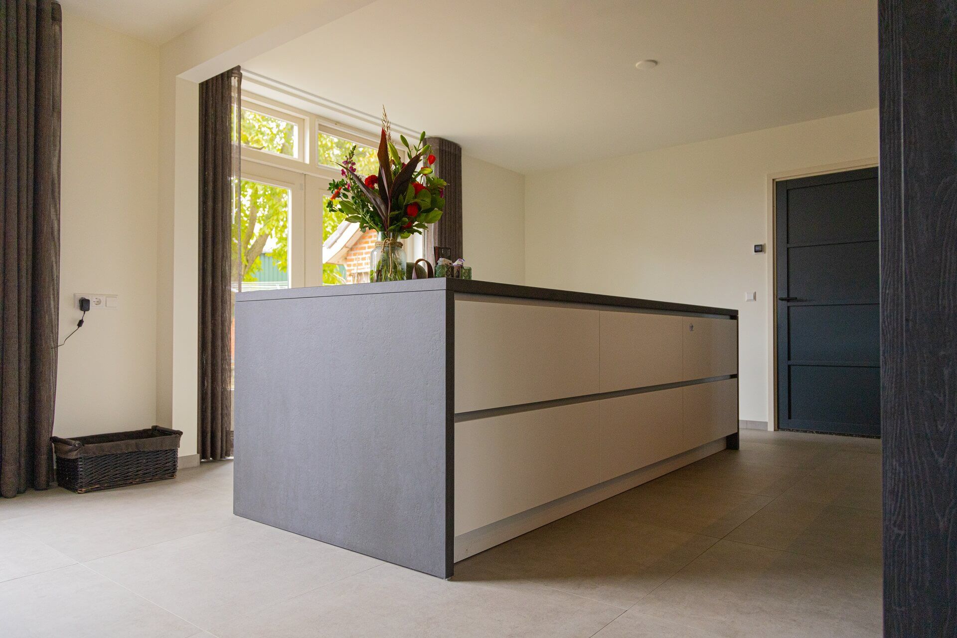 Voor familie Litjens uit het Limburgse Leunen hebben we de onderverdieping van de woning compleet mogen vernieuwen met een grote maatwerk doorloopkeuken inclusief groot schier/-eeteiland.